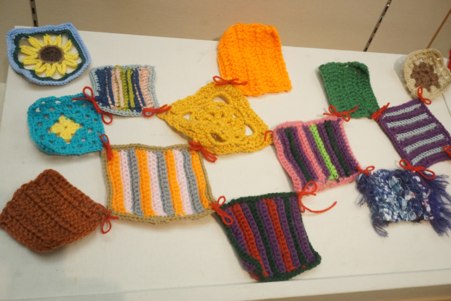 同法人地域総働事業部の櫻井絵里子さんは「編み物の得意不得意に関わらず参加しやすい形を意識した。本当に多くの人が協力してくれたので、各所でつくられたものが一堂に会するというのが趣深い。毎年恒例の取り組みにして、ゆくゆくは町全体にこの『冬じたく』を広げていけたら」と話していた。