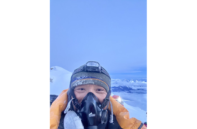 9月24日18時30分、いよいよ山頂に向けての行動日。この日の予定行動時間は24時間。まだ見ぬ高所での長時間の行動で自分の身体がどうなってしまうのかと、不安と緊張を抱いて登り始めた。C3からの登りは氷壁の急登から始まり、その後も斜度60度以上はあるような急登が続いた。暗くて景色は見えないが自分の足元のすぐ横は暗闇に向かって氷と雪の斜面が続いていた。