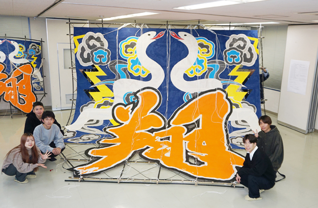 続いて午後2時からは、新成人による20畳敷東近江大凧の飛揚が聖徳中学校グラウンドで行われる。大凧は、成人式実行委員会が昨年制作したもので、縦5メートル、横4・8メートル、重さ約40キロ。判じ文は「翔べ!未来へ!」。