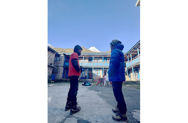27日未明から天候は大荒れとなり、雪が降らないと言われていたマナスルBCもテントが埋まるほどの雪が降り、周囲では雪崩がたくさん発生していた。28日には大雪の中、BCを出発し麓のサマ村(3500m)まで下山した。サマ村に着いて緊張が解けたのか、ロッジからマナスルを見た時に「あの山頂まで行ったんだな」と初めて実感が湧いてきた。
