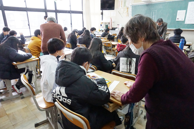 【日野】 日野町立日野小学校でこのほど、日野俳句会「鳰(にお)の会」メンバーを講師に招いた俳句学習が行われ、6年生107人が参加した。