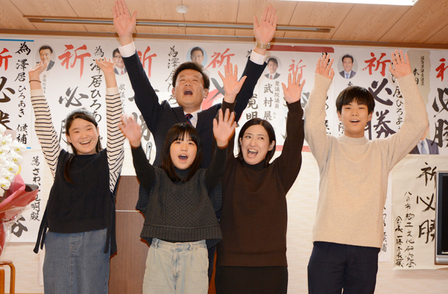 一方、沢居氏の選挙事務所でも午後11時過ぎ、集まる支持者らの歓声と拍手で湧いた。支持者に感謝の言葉を並べた沢居氏は「7日間走りきった結果が結びついた。控える10月の市議会議員選挙まで短い期間ではあるが、3月、6月、9月の市議会のなかで、皆さんの願いを、私の政策をぶつけたい。公約を守り、提案もしっかりしていきたい。皆さんの困りごとを一緒に解決できるようやっていきたい」と気を引き締めた。
