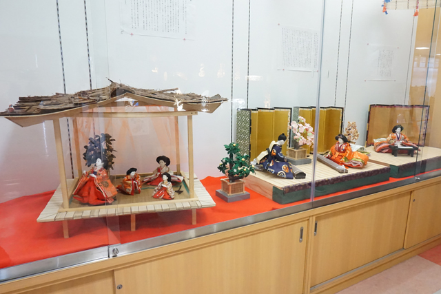 今年で8回目の催し。メイン会場では町民から貸し出しまたは寄贈されたひな段飾り12セットの展示をはじめ、同公民館の自主文化活動グループやドラゴンカレッジ受講生による作品の展示が行われている。