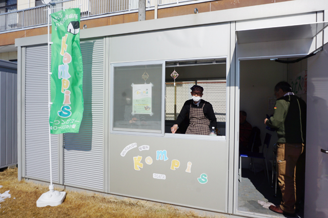 南部コミュニティセンター(沖野2丁目)の芝生広場には、連日の降雪から一転して、早春のようなやわらかな日差しが残雪の表面に散っていた。その一角に建つコンテナハウスが「コンピス」の活動拠点だ。