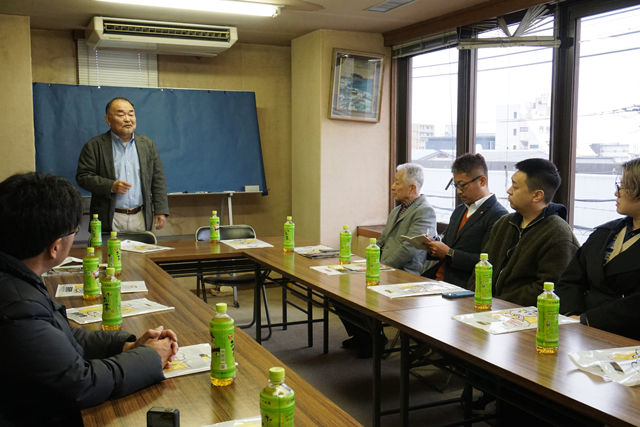 今日新聞社に到着した一行は、檀上陽一社長から歓迎のあいさつを受けたあと、会社の概要説明を聞き、地方新聞の役割について意見交換した。