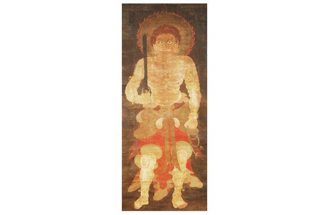 百済寺の「絹本着色不動明王図」は鎌倉時代の作。異形の不動明王で、一般に「黄不動」と呼ばれる。