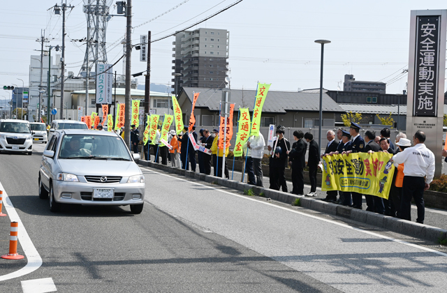同運動(15日まで)は交通事故ゼロをめざし、通学、通園に不慣れな新入児の入学時期に合わせ、毎年実施されており、ことしは、子どもをはじめとする歩行者が安全に通行できる道路交通環境の確保と正しい横断方法の実践、ながら運転等の根絶とシートベルトやチャイルドベルトの適切な使用の促進、自転車と特定原付自転車利用時のヘルメット着用と交通ルール遵守の徹底を重点目標に展開。期間中、違反者に対しての交通取締りの徹底も図られる。