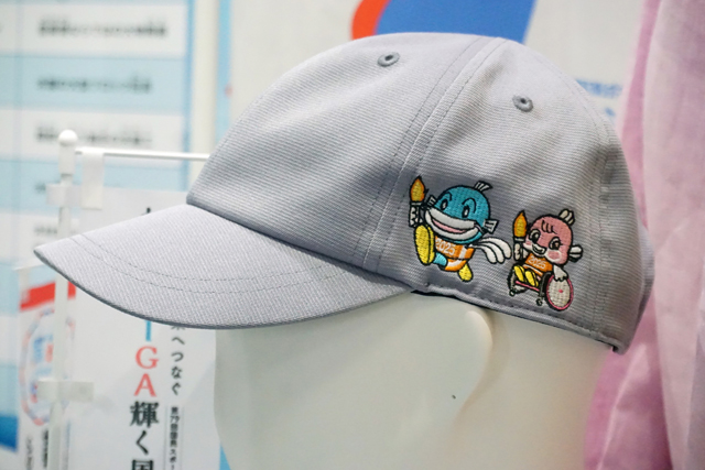 県では25日まで県庁本館1階県民サロンで同衣装を展示している。同時に、両大会で各都道府県名が記されたプラカードを持って選手団を先導する県内の高校生らから選ばれたプラカーダーが着用することになる琵琶湖のヨシ繊維が織り込まれた帽子も展示している。同帽子は開催中の「大阪・関西万博」の運営スタッフ用ユニフォームとしても採用されており、展示ではヨシの利活用などについても紹介している。