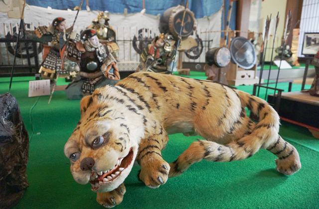 端午の節句に合わせた展示で、武者人形の多くは古く江戸時代までさかのぼる。各会場には豊臣秀吉の本陣を再現した陣中飾りや、楠木正成の陣内飾りなど英雄豪傑をモチーフにした武者人形のほか、和紙で作られた長さ5メートル以上にもなる坂田の金時鯉のぼりなども展示し、子どもたちの健やかな成長を願っている。展示は5月6日まで。