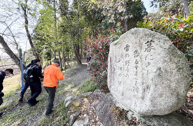 雪野山は標高308メートル。1989年、山頂部で古墳時代前期の未盗掘の竪穴式石室が見つかり、雪野山古墳として2014年、国指定史跡に登録された。近年は、老若男女が気軽に登山を楽しめるトレッキングコースとしても人気を集めている。湖東平野を見下ろす展望台なども設置され、4月になると尾根ルートは紫色の鮮やかなコバノミツバツツジが並ぶなど豊かな草花が群生するほか、古墳をはじめ、平安時代の歌人・和泉式部の歌碑が設置されるなど歴史文化も色濃く残る。