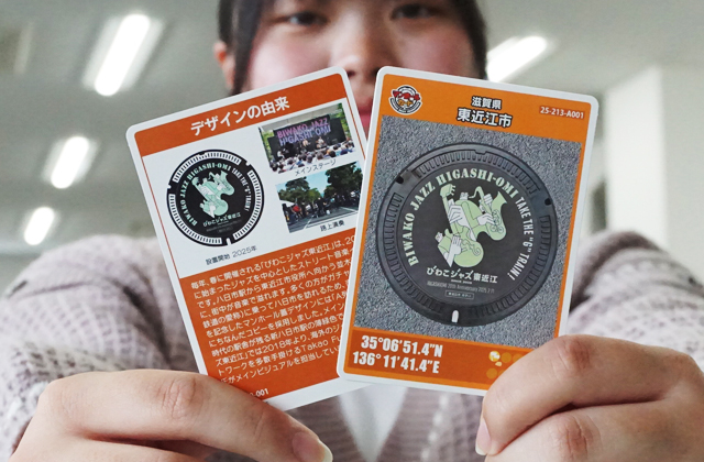 また、このうち、びわこジャズ東近江のデザインをあしらったマンホールカード(4千枚)が25日から、配布される。平日は同市水道事務所(川合寺町)、休日は同市役所守衛室(八日市緑町)。ただし、びわこジャズ東近江が開催される26日、27日については、会場内の市役所本館ロータリー付近で配布する。