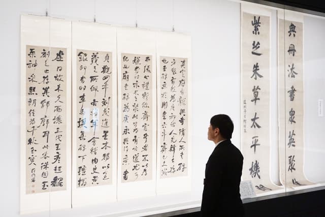 【東近江】 書の文化に触れる博物館、観峰館(東近江市五個荘竜田町)で、中国清朝時代を代表する2人の書家にスポットを当てた企画展示「中国書法リレー展示 何紹基(かしょうき)VS楊峴(ようけん)」が開かれている。