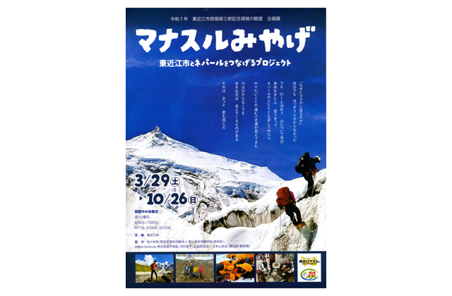 ちなみにマナスル山は1956年、日本人が世界初登頂した山で、標高8163メートル、世界8位の高さを誇る。登頂に至る事前交渉では、東近江市に縁のある西堀榮三郎が1952年、単身でネパールに入国し、国王や農林大臣と交渉して登山許可を得た。