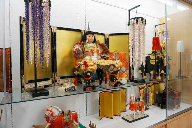勇ましい五月人形やこいのぼり展示
