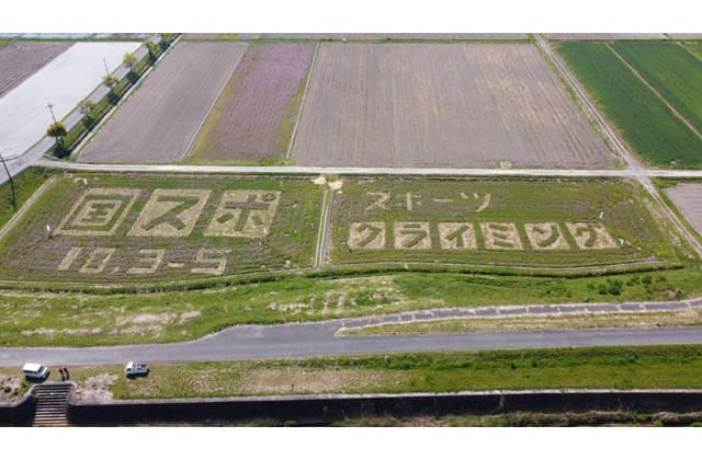 【竜王】 竜王町の鵜川自治会有志がこのほど、同町で開かれる「わたSHIGA輝く国スポ・障スポ スポーツクライミング競技会」の機運醸成のため、竜王町鵜川地先の田んぼに田んぼアートをつくりあげた。