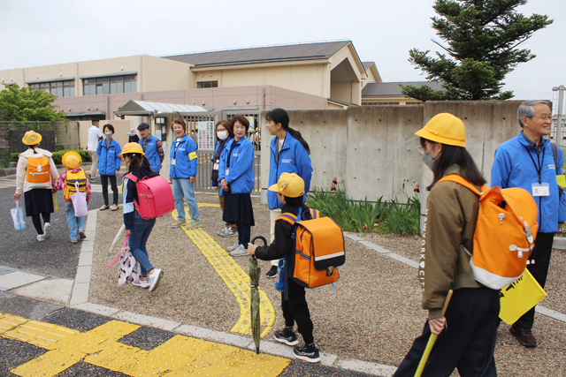 【東近江】 「民生委員・児童委員の日」である5月12日、東近江市内では同日朝、民生委員児童委員(291人)による小学生の登校見守り活動があった。