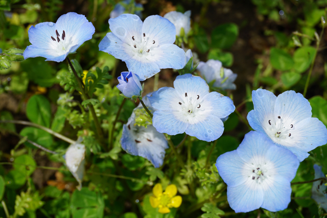 和名を瑠璃唐草(るりからくさ)、別名はベビーブルーアイズと呼ばれるネモフィラには「可憐」「貴方をゆるす」「どこでも成功を」などの花言葉があり、一面に広がる花畑は「青いじゅうたん」のように見えるフォトスポットとして毎年多くの人気を集めている。