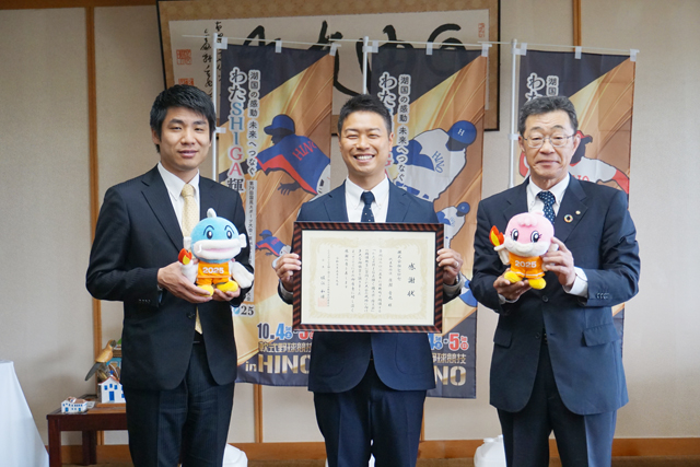 堀江和博町長から感謝状を受け取った伊藤佑ホールディングスの伊藤侑祐社長は「暴力ではなくスポーツで勝負を決めることは、(世界情勢含め様々ある)今の時代に非常に意味ある大会で、これを滋賀県、また日野町で実施できることをうれしく思う。地域の活性化に役立てれば幸い」と話していた。