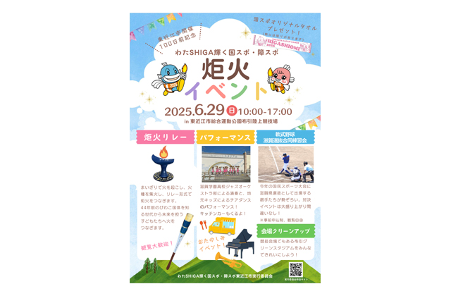 【東近江】 東近江市は29日、今秋の国民スポーツ大会・全国障害者スポーツ大会の開会式で使う炬火(きょか)の採火とリレーのイベントを東近江市総合運動公園布引陸上競技場で開催する。観覧自由。