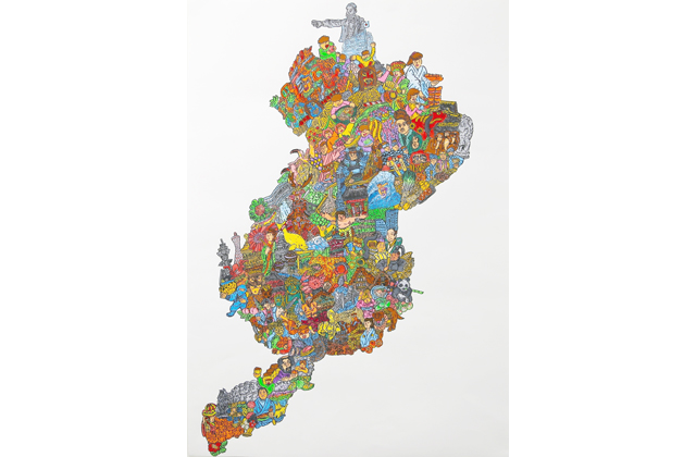 鳥山さんの作品「滋賀県に集まる」は、なまはげ(秋田県)・信楽焼(滋賀県)・もみじまんじゅう(広島県)・西郷隆盛(鹿児島県)など各都道府県の名産やゆかりの人物、景勝地などを2~3点集めて琵琶湖の形をかたどっている。鳥山さんは「絵を見られた方が自分の出身地は何が描かれているか、探しながら楽しんでいただけるとうれしいです」とコメントしている。