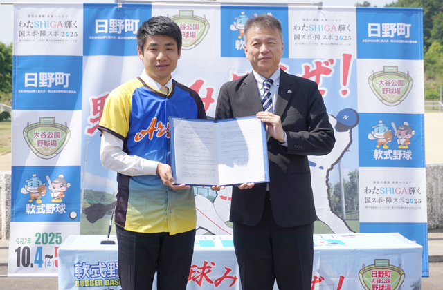 イベント当日は、滋賀県大津市の東レ滋賀事業場を本拠地とする東レの女子バレーボールチーム「東レアローズ滋賀」と日野町による、スポーツ振興を目的としたパートナーシップ協定締結式も実施。「東レアローズ滋賀」の所属選手6人も来町し、炬火イベントにも参加して盛り上げに一役買った。