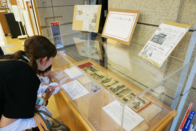 また大阪・関西万博滋賀魅力体験ウィークに関連して、7月13日まで蒲生図書館入口で初代堀井新治郎がふるさとの知人へ土産として贈ったシカゴ万博のパンフレットおよび会場の盛況なようすをしたためたはがきを展示している。