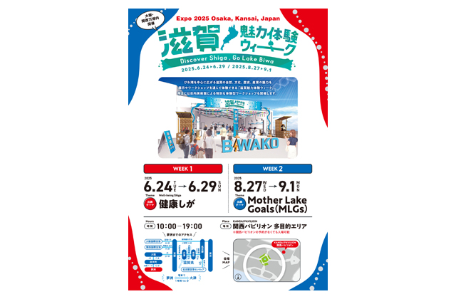【県】 「大阪・関西万博」の関西パビリオン「多目的エリア」で県の魅力を集めたイベント「滋賀魅力体験ウィーク~Discover Shiga,Go Lake Biwa~」がいよいよ24日~29日に開催される。