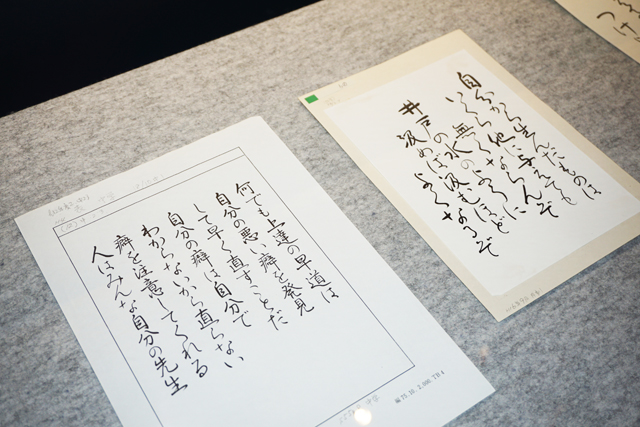 会場では、観峰が残した臨書など往年の大作を紹介しているほか、かな文字や漢字を織り交ぜた調和体の「訓語」が注目を集めている。毎月発行されている財団の手本書にも採用されているもので、そこには観峰の優しさや厳しさが垣間見える教えが込められている。