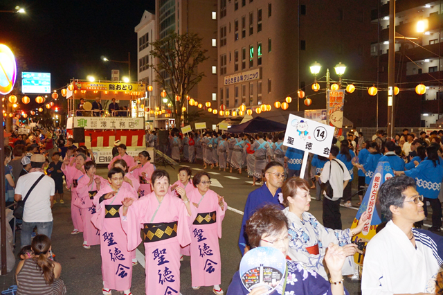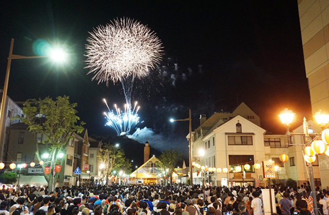 【東近江】26日夜、第53回聖徳まつり2025の江州音頭総踊りやドローンショー、観光花火大会が、八日市駅周辺で開催され、家族連れなど大勢の市民でにぎわった。