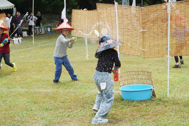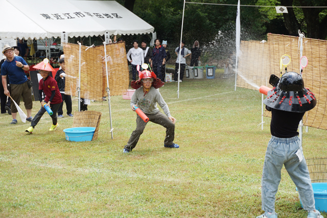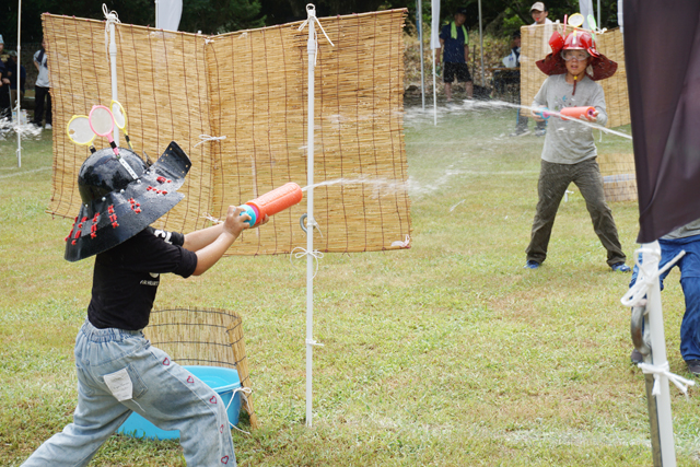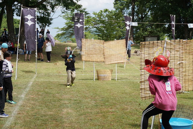 【東近江】戦国武将で「瓶割り柴田」の異名をもつ柴田勝家と佐々木六角の激戦地・瓶割山が平田地区にあることにちなんだ水鉄砲合戦のイベント、「世は戦国!雪野山夏の陣」が3日、雪野山歴史公園(東近江市上羽田町・中羽田町)で開催された。