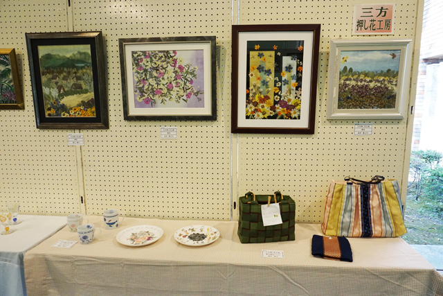 作品を出展した三方押し花工房の徳永信子さんは「8月なので夏を意識した作品をそろえました。暑い日が続きますが、作品を見ながらひとときの涼を楽しんでもらえたら」と話していた。