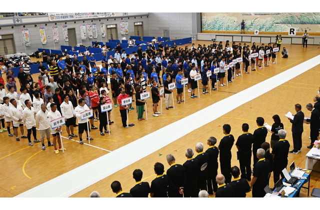 初日の開会式で、選手、役員が整列して開会宣言を行い、主催者あいさつなどに続いて出場選手を代表して地元滋賀の倉田一輝さん(少年男子)と広谷聖哉菜さん(同女子)が並んで「仲間と力を合わせ、相手へのリスペクトを忘れずにフェアープレーに徹し、最後まで綱を引くことを誓います」と選手宣誓を行った。