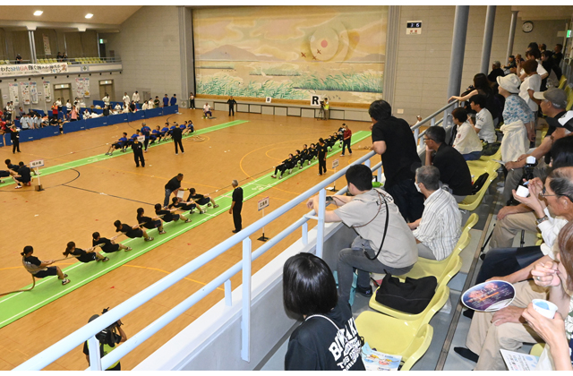【近江八幡】滋賀県で9月28日から開催される「第79回国民スポーツ大会」の公開競技「綱引」が23、24日の両日、空調設備が備わったあづちマリエートで開かれた。