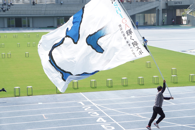 【県】 今秋、県で開催される第79回国民スポーツ大会・第24回全国障害者スポーツ大会(「わたSHIGA輝く国スポ・障スポ」)に向け、このほどメイン会場となる平和堂HATOスタジアム(彦根市松原町)で国スポ総合開会式と総合閉会式、障スポ開会式と閉会式の流れを参加者らが確認する式典総合練習会が開かれた。