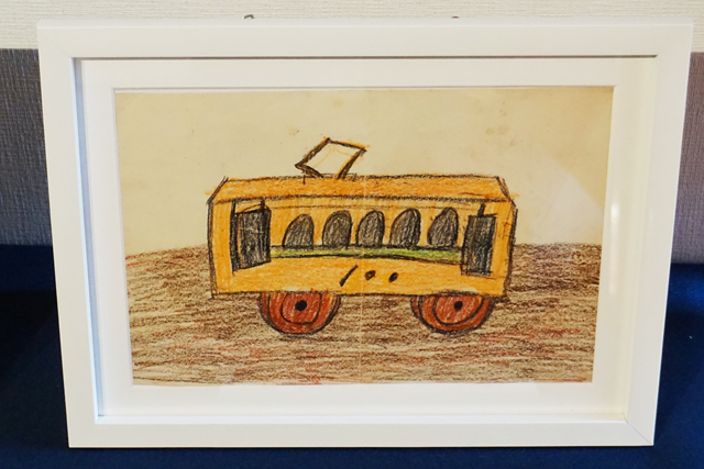 メイン展示である幅野家3姉弟の絵には、綿向山や家族の食事風景、農作業、運動会、校庭での雪合戦など日常の光景が描かれている一方で、裏面には戦闘機と軍艦などのクレヨン画が描かれているものもあり、当時の子どもたちの目から見た戦時中のようすが伝わってくる内容になっている。