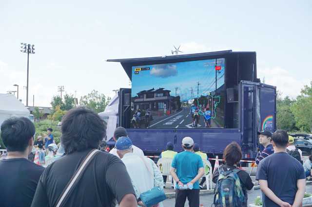 コースは、田園地帯や丘陵地帯をぬう県道、市道に設けられた11.4キロの周回コース(成年男子114.4キロ、少年男子80.2キロ、女子46キロ)。沿道からは市民が声援を送り、市内から家族と訪れた女性は、「初めての観戦です。迫力あるレースですごいですね」と話していた。