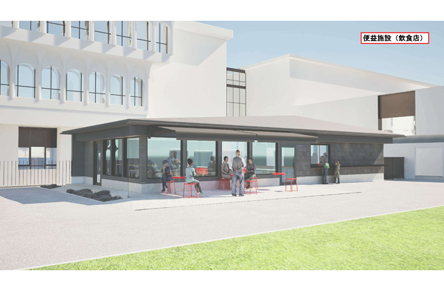 「みんなが憩い、集う、街のオアシス」芝生広場と飲食店を再整備