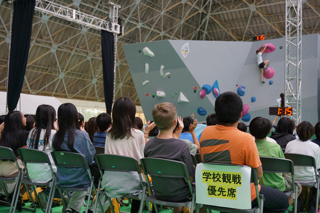 屋外エリアには町内外の事業所・飲食店によるおもてなし会場が設置され、訪れた人を歓迎。会場には3日間でのべ8800人が来場した。3日は町内の小学生を招待した学校観覧も行われ、「ガンバ!」とスポーツクライミング定番の掛け声で選手を応援し、プロのMCが盛りあげる華やかな会場の雰囲気を体感した。観戦した竜王小学校6年生の山中翔太さんと山中健聖さんは「選手たちの登っている姿がめっちゃかっこよかった。スポーツクライミングって楽しいなと思ったし、また見たいと思った」と目を輝かせていた。