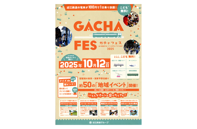 【東近江など】 近江鉄道全線が大人100円(小学生以下無料)で1日乗降自由で、沿線地域で約50のイベントで盛り上がる「ガチャフェス2025」があす12日、開催される。