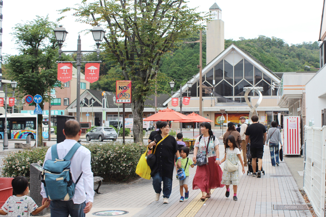 中心市街地活性化の拠点施設「SATSUKI―RO」ではマルシェが開かれ、手づくりの小物や軽食が販売されていた。
