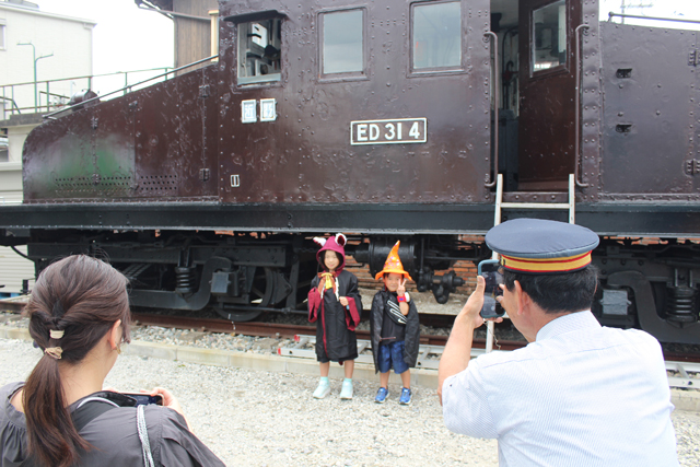 国産最古級の電気機関車「ED31形4号機」が保存・展示されているED31―4パーク(旧近江酒造敷地)では、来場者が実際に機関車に乗ったり、園児の塗り絵展を見学していた。