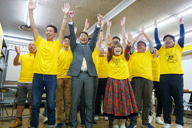 【東近江】19日午後11時半、当確情報が出た各陣営では歓声と安堵が広がった。今年2月の補選でトップ当選し、今回初となる本選で当選を果たした小梶昌巳氏=東中野町=の事務所も歓喜の渦に包まれ、支持者と万歳三唱で喜びを分かち合った。2度目の当選を受けて小梶氏は「補欠選挙で皆さまに議場へとあげていただき、自分を必要としていただける場所や人の元へ足を運んで活動してきた、その部分を見ていただいたのかなと思う。まだまだ初心者マークをつけている身分、新人として、これからの4年間しっかりと市民のために活動させていただきたい」と気を引き締めた。