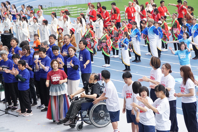 【県】 25日に行われる第24回全国障害者スポーツ大会(わたSHIGA輝く障スポ)開会式と、27日開催の閉会式に向け、県と大会関係者らがこのほど、各式典の会場となる平和堂HATOスタジアム(彦根市松原町)で開閉会式総合リハーサルを実施、出演者らが本番さながらの熱量で当日の演出を確認した。