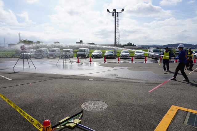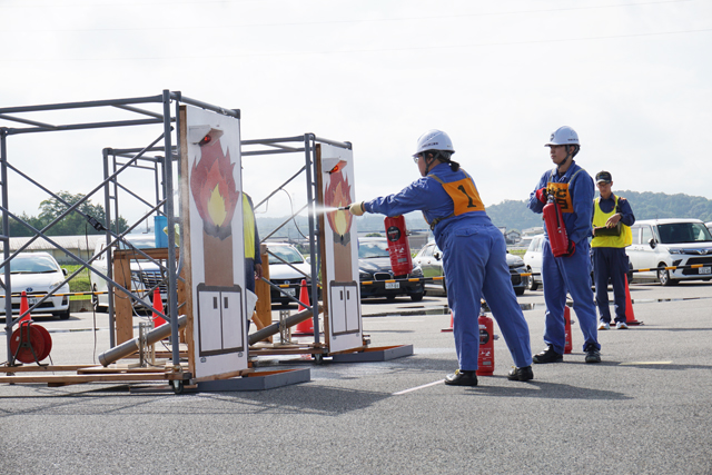 同大会は、工場や事務所で火災が発生した場合に役立つ初期消火技術と消火器具の使い方および119番通報のやり方を習得することを目的に毎年実施されている。