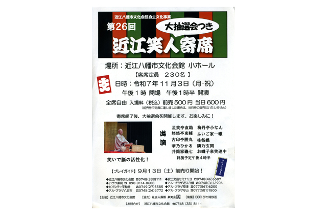 【近江八幡】近江八幡市文化会館小ホールで11月3日午後1時半から「第26回近江笑人寄席」が開かれる。