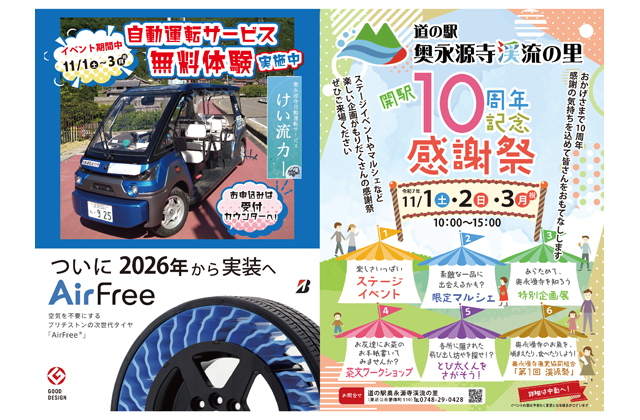 また、会場では奥永源寺漁業協同組合による第1回渓流祭が開催され、川魚の炭焼きや渓流の魚たちを網ですくう「渓流ビンゴすくい大作戦!」などのイベント、自動運転車両の無料体験(当日申込)が実施される。