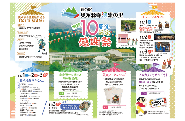 【東近江】 道の駅奥永源寺渓流の里(蓼畑町)で11月1日から3日までの3日間、開駅10周年記念感謝祭が開催される。