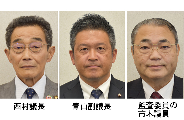西村議長は就任のあいさつで、今議会から議会改革の一環として議員定数が3減って22となるのに触れ、「行政の監視機能、市民の意思反映、政策立案と提言などの議会の役割がおろそかになり、議会活動が停滞すれば本末転倒」「議会機能をさらに高めるため、議員22人が一丸となって努力を続けていかねばならない」と決意を語った。