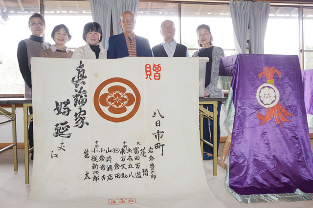 三代目真鍮家好延の幕は当面の間、江州音頭の練習場のある天理教湖東大教会(八日市清水3)で展示している。見学希望は三代目真鍮家文好さん(TEL090―1487―2579)へ連絡する。