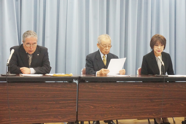 【全県】 戦後80年を迎えたことを受け、一般財団法人滋賀県遺族会(松浦友一会長)では若年世代に戦争の恐ろしさと平和の大切さについて考える機会を設けることを目的に、今年初めて県内の小・中学生を対象とした作文「私の考える戦争と平和」を募集した。このほど、その審査を終え、同会の松浦会長らが県庁で記者会見を開き、作文の審査結果と作文入賞者が登壇するシンポジウムについて発表した。